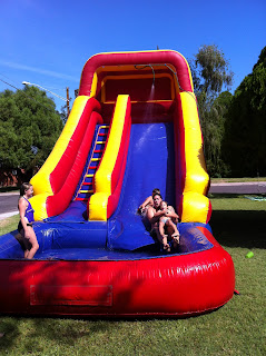 We rented a huge slide this year and the kids had a great time on it. I have to admit it was a bit stressful at times for me with all the boys jumping huge and then sliding down...thankfully no one got hurt!